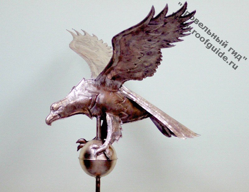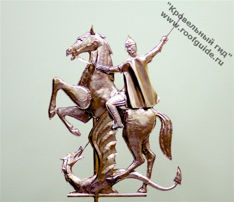 Флюгер популярное украшением здания любого архитектурного стиля. Флюгер отражает профессию и характер хозяина дома. Медный флюгер с годами патинируется и становится темно-зеленым.