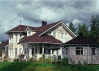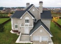 Нестандартная прямоугольная форма черепиц придает кровле изысканный вид, напоминающий гонтовую кровлю старинного особняка.