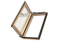 - деревянные мансардные окна с приподнятой осью поворота створки;